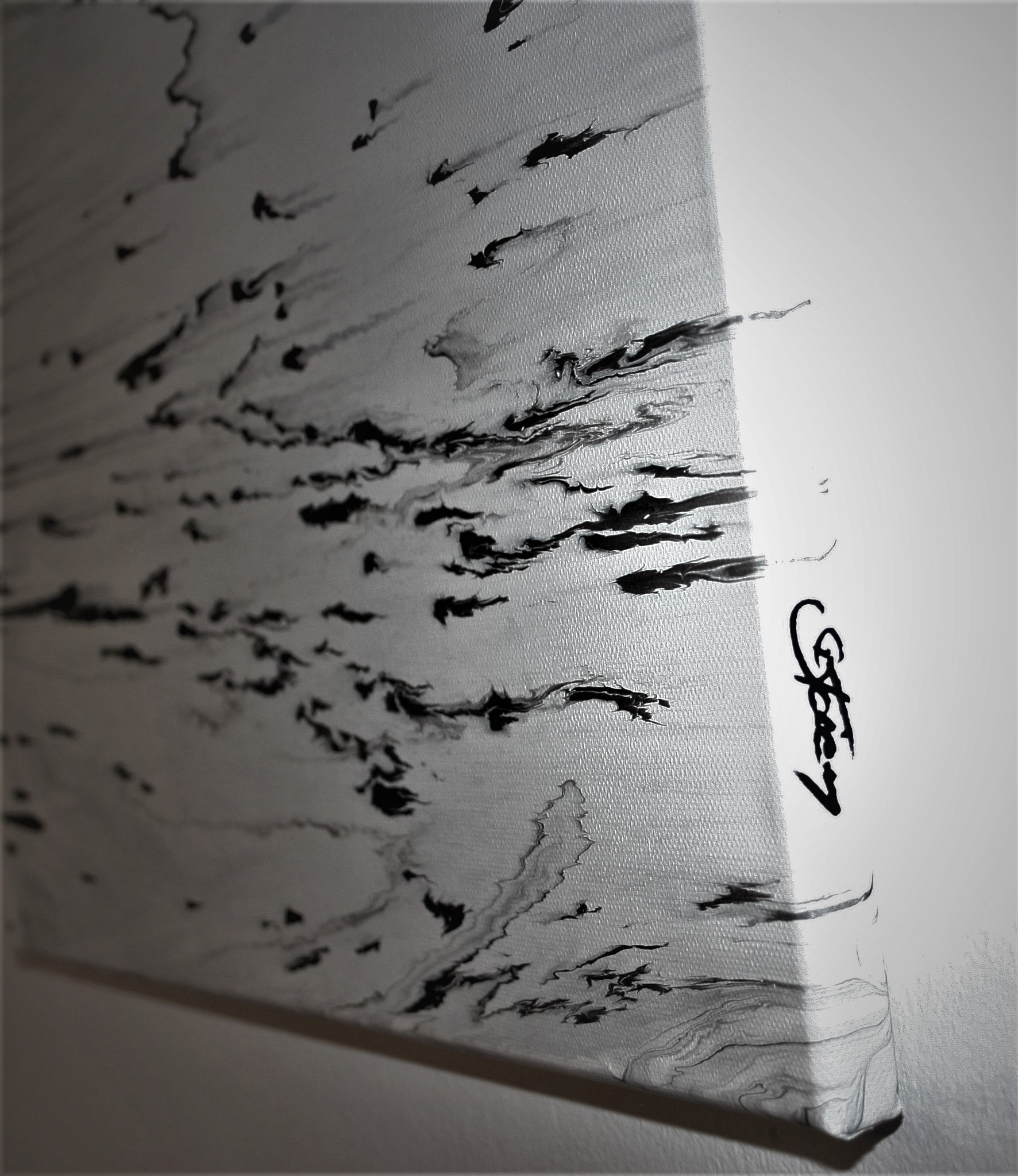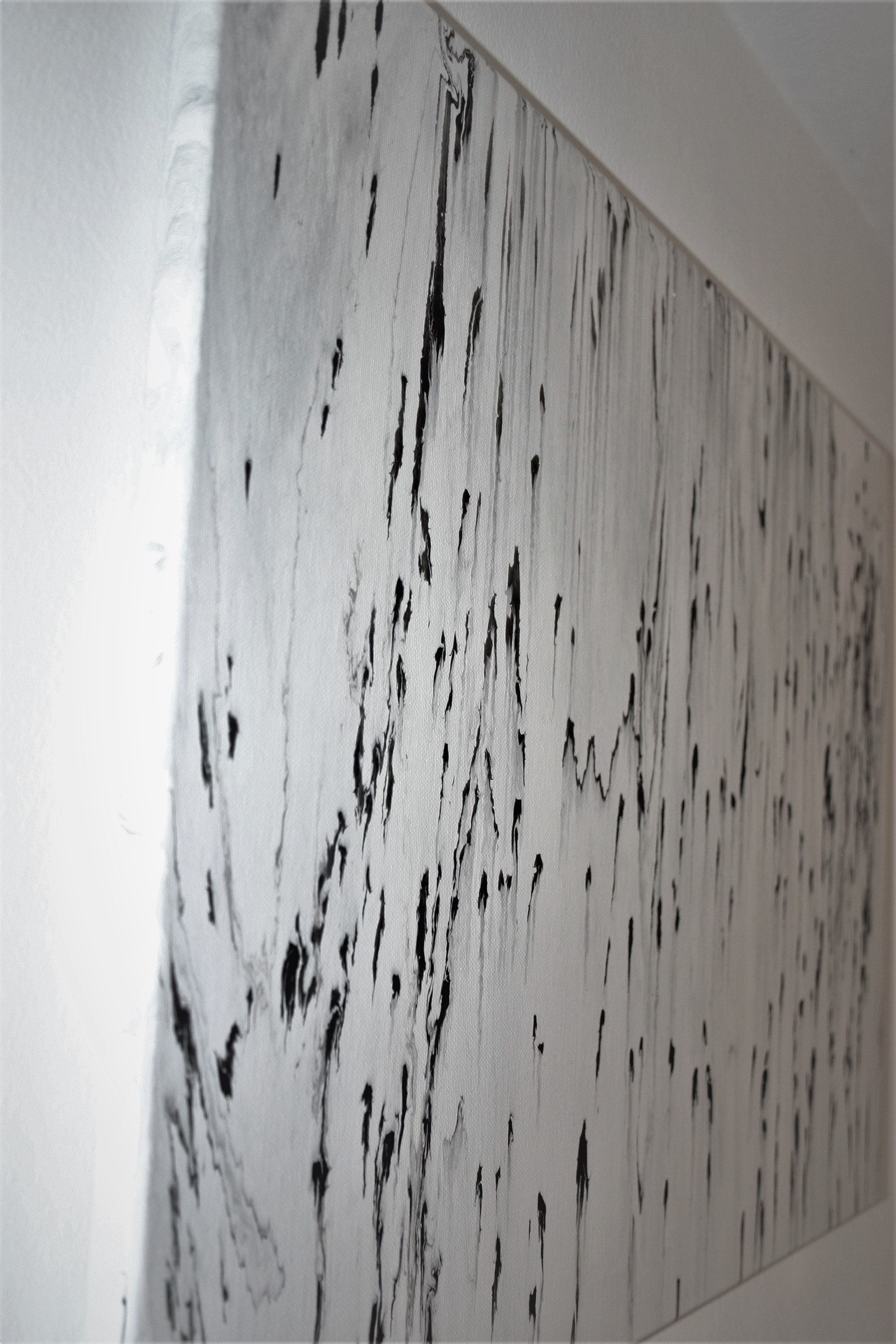 Rama este din lemn de brad, panza din bumbac 100% natural necolorat cu un gramaj de 300g/m2. Tehnica folosită: pouring/turnare.